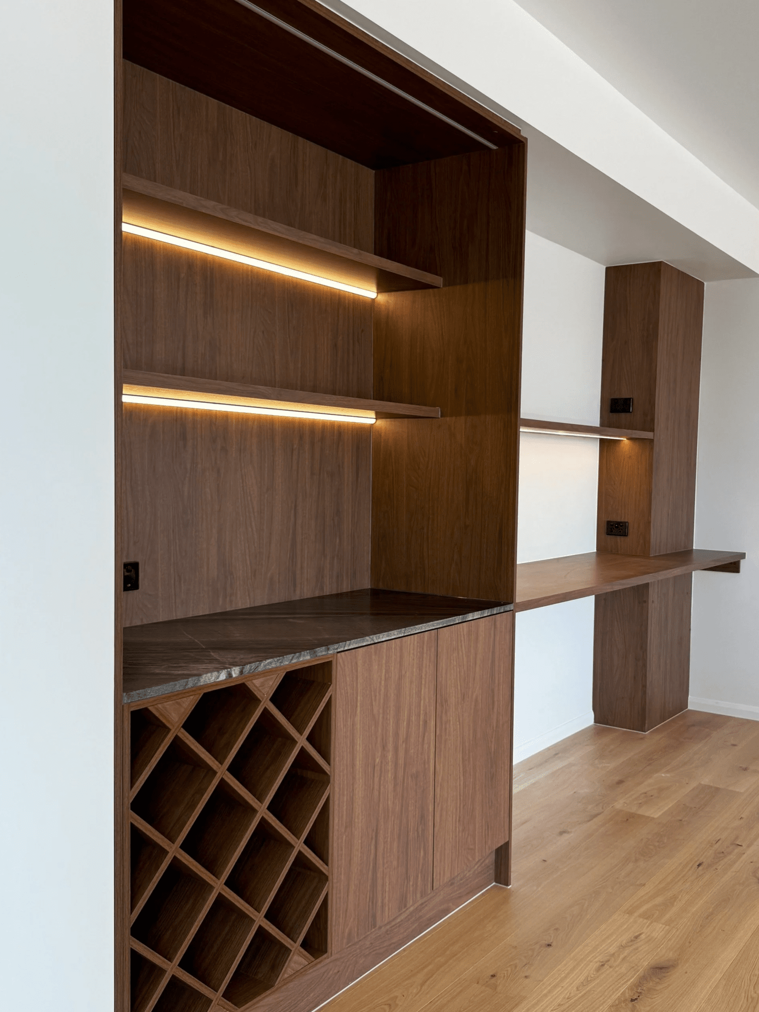 Tailored kitchen cabinetry with local materials and modern finishes.
